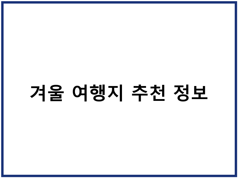 겨울 여행지 선택 가이드
