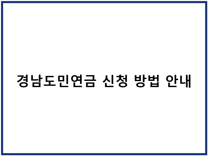 경남도민연금, 이렇게 신청하세요!