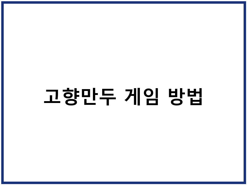 고향만두 게임, 추억 속으로 떠나는 방법