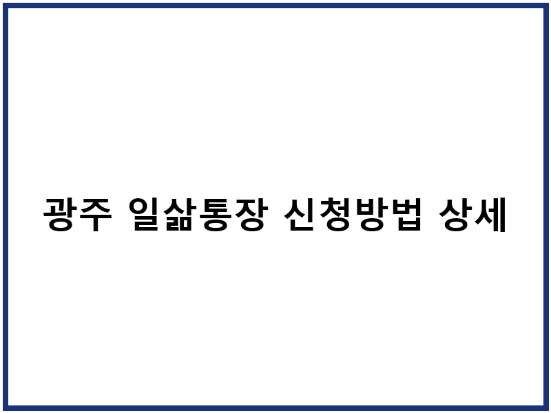 광주 일삶통장, 이렇게 신청하세요! (신청 절차)