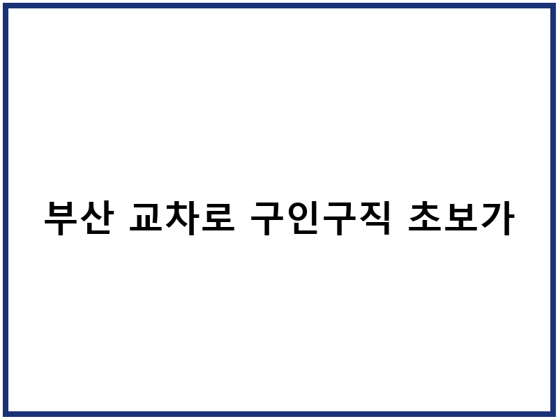부산 교차로 구인구직, 어떤 일자리가 있을까?