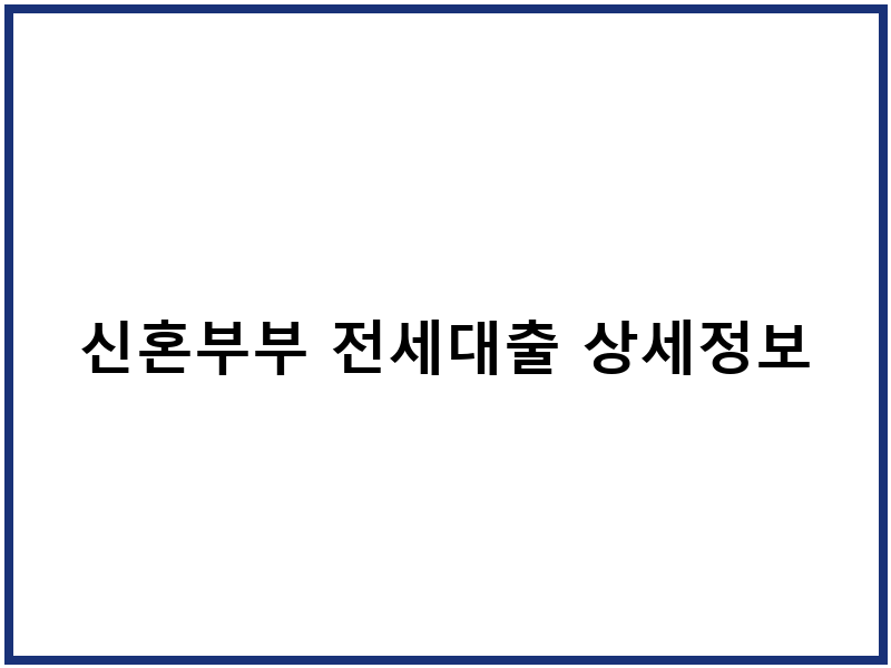 신혼부부 전세대출 한도 및 대출 가능 금액