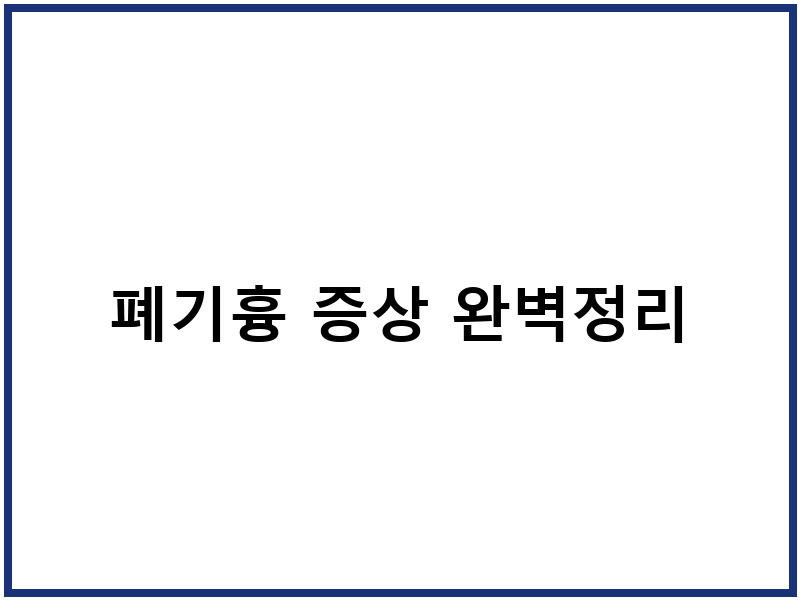 폐기흉에 안 좋은 행동은 무엇일까요?