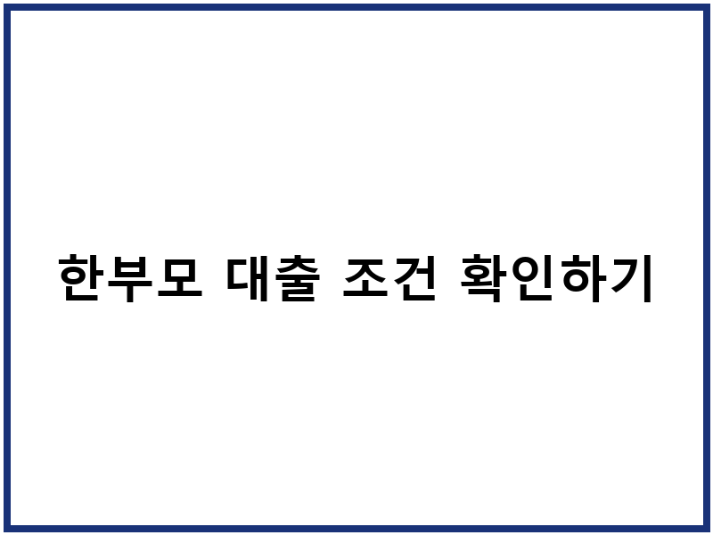 한부모 대출 자격 조건 상세 안내