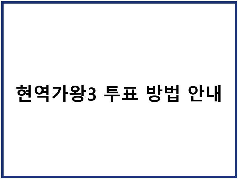 안녕하세요! ‘현역가왕3’를 보면서 응원하는 가수를 위해 힘을 보태고 싶으신가요? 어떻게 투표해야 하는지, 하루에 몇 번이나 가능한지, 그리고 투표할 때 꼭 알아둬야 할 점까지, 이 글 하나로 완벽하게 정리해 드릴게요. 여러분의 소중한 한 표가 여러분이 응원하는 가수의 무대를 더욱 빛나게 할 수 있답니다!