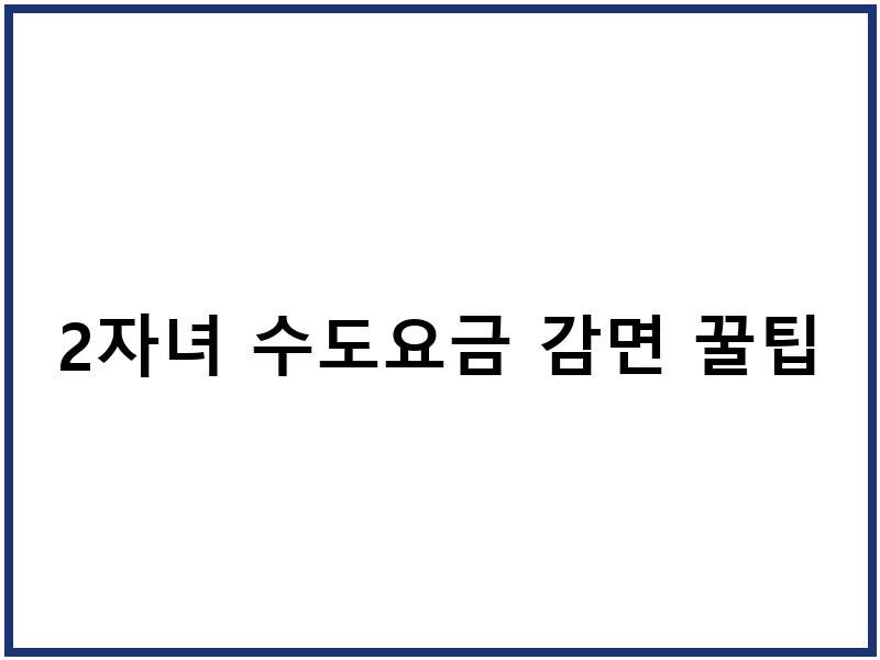 2자녀 수도요금 감면, 2026년 기준 상세 안내